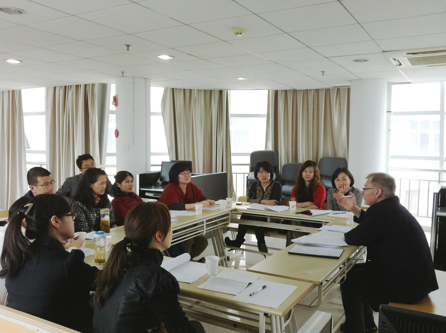 2012年4月12日下午两点,作为中丹教学质量检查周安排项目之一的国际化课程研讨会在专家楼三楼语音室顺利召开。我校部分国际化课程教师和外语学院的部分教师与丹方项目主管Jorgen Dalhoff进行了研讨。