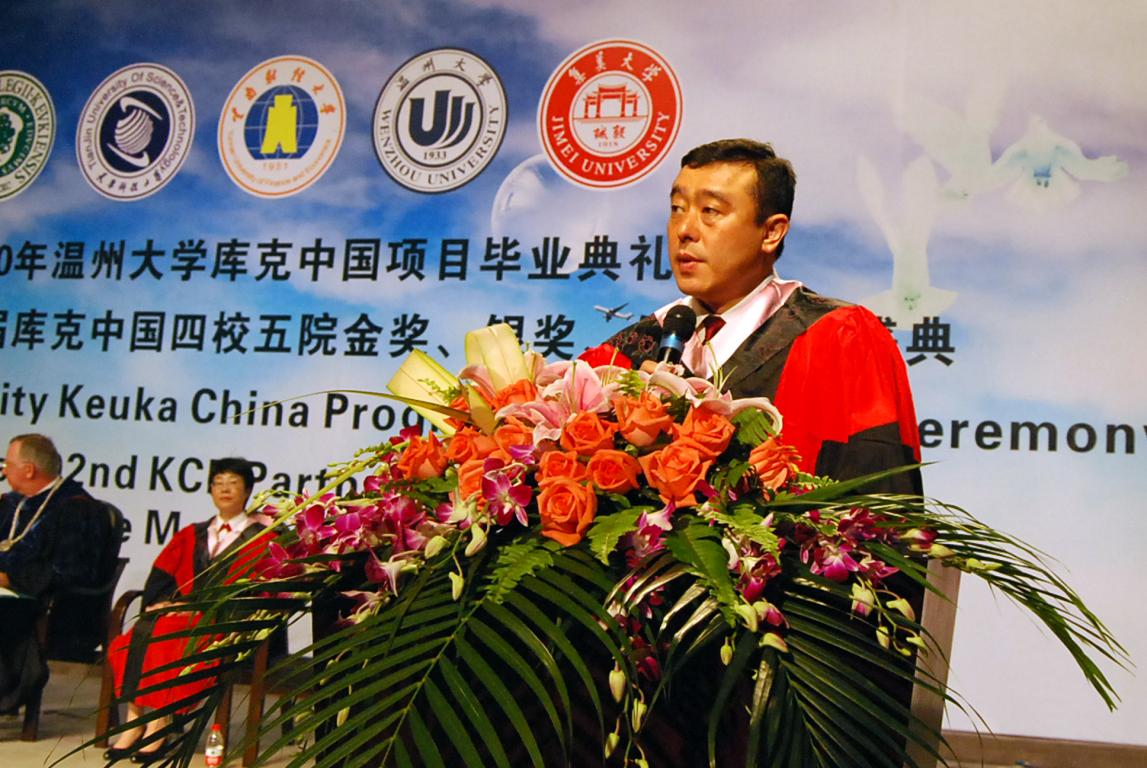 相关部门、学院领导、库克中国四校五院获奖学生代表、毕业生亲友及部分对库克合作项目感兴趣的市民参加了本次盛大的典礼。典礼由国际合作学院院长严晓鹏主持。