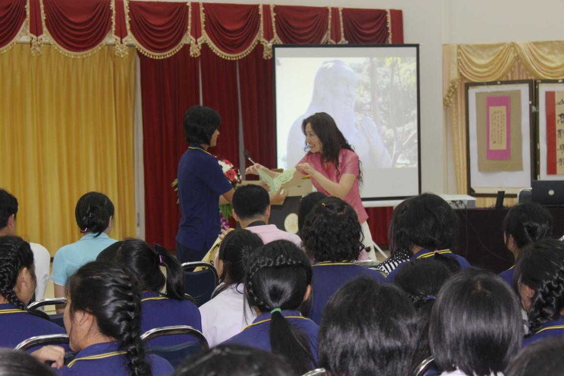 泰方院长符丽珠博士向学生们介绍了孔院设立一年来的发展情况,中方院长丁力博士介绍了中秋佳节的传说和习俗,海角视频
