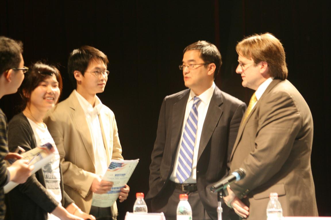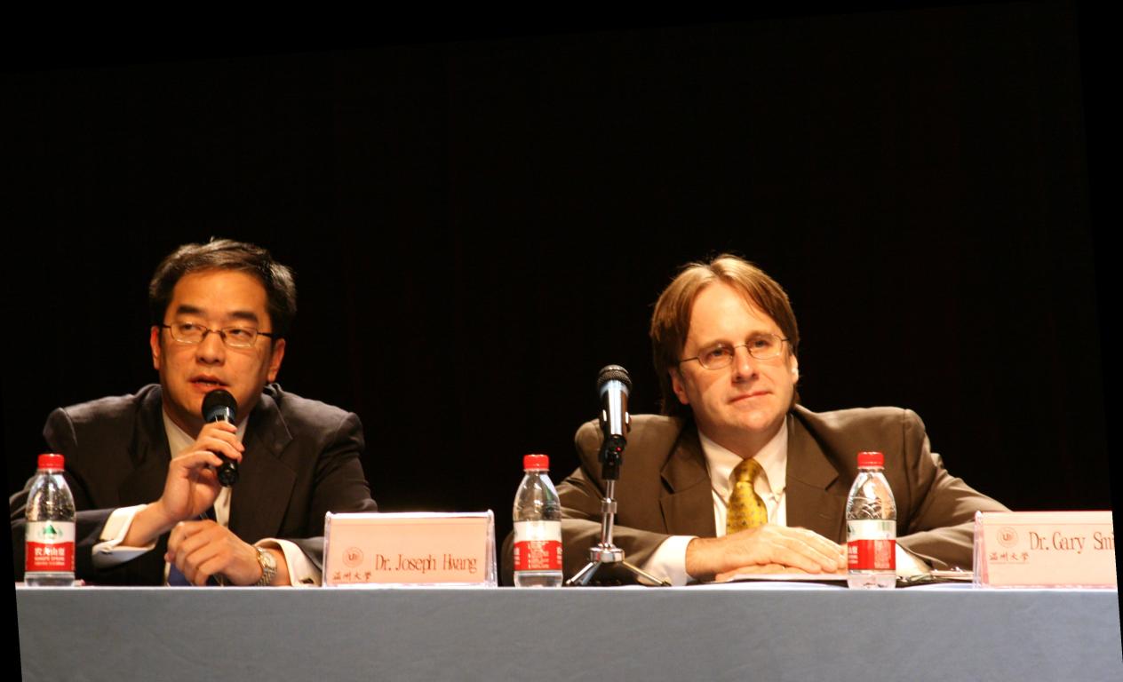 全体教职员工及07、09级学生聆听了黄天中博士生动精彩的报告。他向学生们介绍了该教学理念的独特之处,希望每个学生掌握适合自己的学习方法,做个性化的自己,用创意及时间管理的观念做好生涯规划。而后,在留学库克说明会上,库克大学副校长Gary Smith博士就库克留学、暑期游学事项及奖学金政策为同学们做了详细的说明。会后,他对同学的提问进行了一一答复。