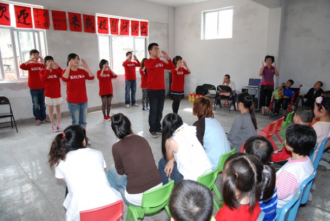 演出即将结束,利宝特殊教育学校的同学们被大家真诚的演出所深深感染,纷纷上台表演。青年志愿者和留学生也被同学们那种坚忍不拔、永不放弃的精神所深深震撼。许久之后,大家带着思考和感恩的心结束了此次慰问演出。