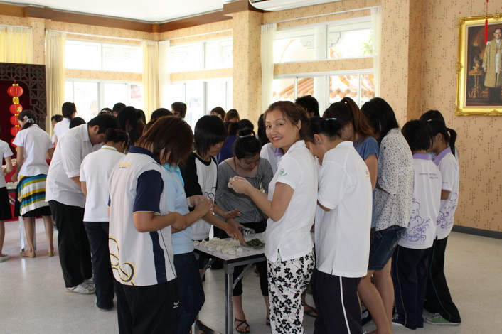 在中国虎年到来之际,国际合作学院派出的汉语教师张丽丽精心设计策划了腊八粥、包饺子、春节晚会、年画剪纸展、猜谜语等中国年俗文化系列活动,采用多种生动活泼的方式,利用各种机会向泰国学生和民众进行中国语言文化的宣传。