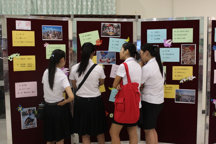 在中国的年俗文化中,年画、剪纸和灯谜占有重要的地位,张老师为了向泰国学生和民众全面介绍这方面的内容,一直注意收集相关信息,特意在春节期间制作成展板展出,分类进行介绍,使学生和民众对中国年俗文化有了深入的认识和理解,同时也在猜谜语的过程中感受领悟中国语言文字的魅力,提高汉语水平。