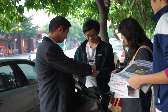 无论眼底闪过多少刀光剑影,只要没有付诸行动,那么,一切都只是镜中花,水中月,可望而不可及。站在一位大约30来岁的叔叔面前,我向他说明了本次活动的意义,他立马拿出了3块钱,买了一份我们的报纸,我的内心无比喜悦,这是我人生的第一次,虽然很少,但是我觉得很满足。在活动中,我们明白每一份钱都不是那么轻松获得的,所以我们没有放弃,我们不断的在街上赚取我们人生的第一桶金。