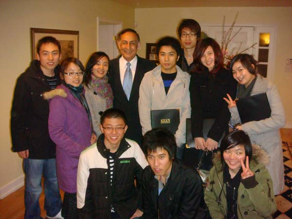 视频聊天结束后,同学们参观了校长官邸并与副校长Janice Murray-Laury、副校长Doug Nelson、对外教育行政主管Michael Searson及学校其它部门负责人一同进餐。几位校长谈笑风生,其乐融融,他们的亲和力和幽默感给这些来自温州的学生留下了深刻的印象。Farahi校长给每位同学赠送了新年礼物。