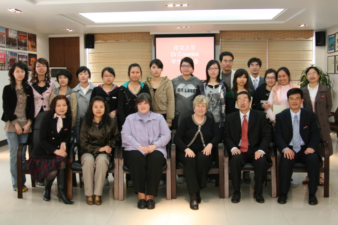 库克项目的基本情况,双方就实际工作中存在的问题和困难进行了详细商讨,并积极共同寻求最佳解决方案。座谈会结束后,Virginia Coombs博士参加了学生见面会,询问学生的学习情况、对学生的提问进行答复,并与学生合影留念。