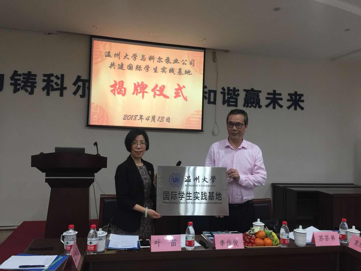 大力发展的三个驱动力。随着“十三五”规划的实施,我校国际化教育发展良好,目前共有来自74个国家的近600名国际学生在校学习。她认为,此次国际学生实践基地的建立将有利于促进国际学生的文化认同,实现三个目标:一是通过实习实践,与科尔泵业携手培养专业素质强、能力素质优的国际学生;二是聘请公司专家作为校外指导师,加强校企之间的人才培养、技术交流和社会服务,将以“泵”为核心的科尔公司产品输送到“一带一路”国家;三是发挥国际学生作为友好使者和桥梁的作用,搭建温大与科尔泵业、科尔泵业与生源国企业的合作平台,为科尔泵业走向国际市场提供最好的服务。她强调:“良好的开端是成功的一半,勉励在场学生一定要学好汉语,学好专业知识,将理论运用于实践,踏实工作,规划好职业生涯的第一步。”