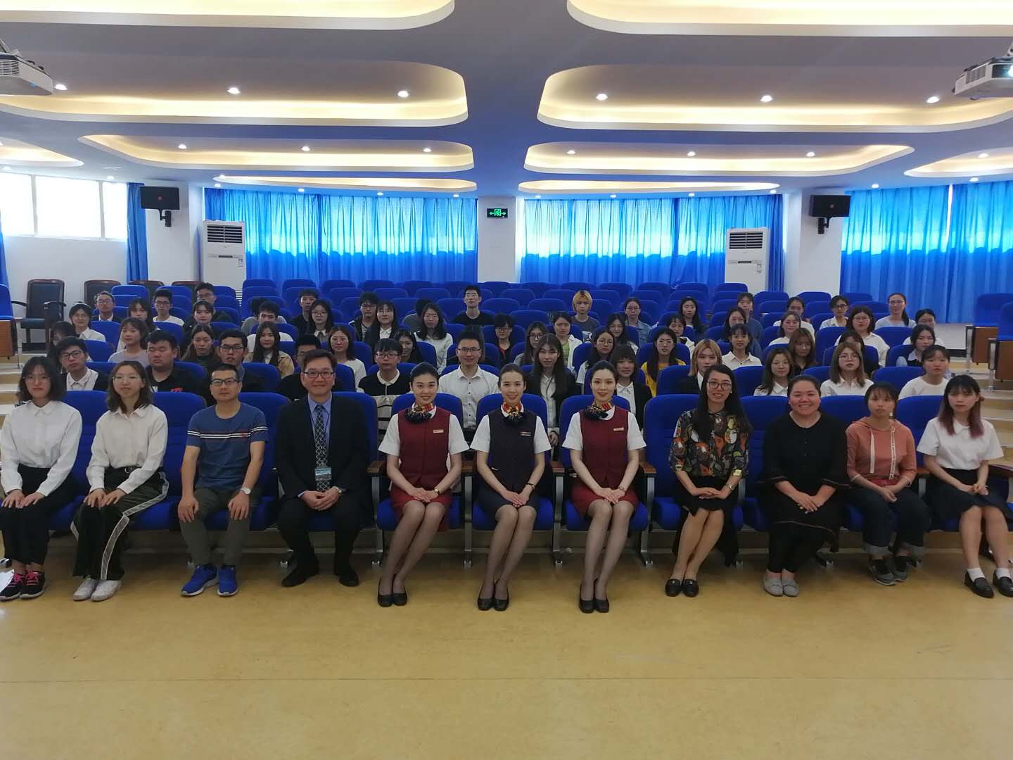 航空管理教研室主办的”航空学术沙龙讲座——空中服务礼仪”于5月29日下午,在北校区3号楼203报告厅举行,中国国际航空股份有限公司温州分公司特别协助海角视频