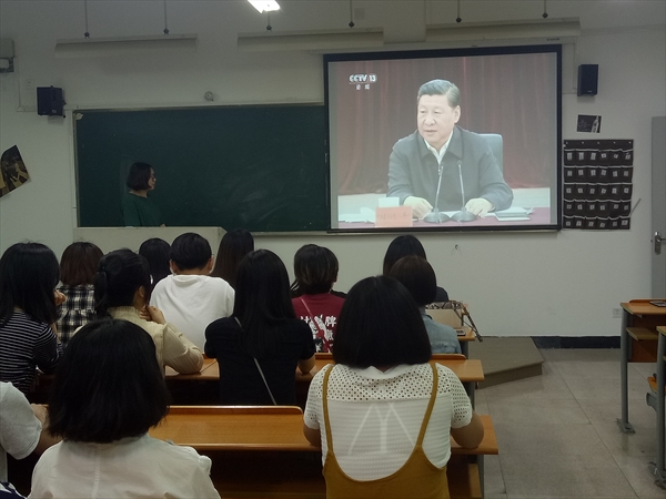 在北校区3号国际楼412教室开展“2017政府工作报告”和习近平总书记在中国政法大学考察讲话专题学习,国际贸易(国际化)等专业的68位学生参加。