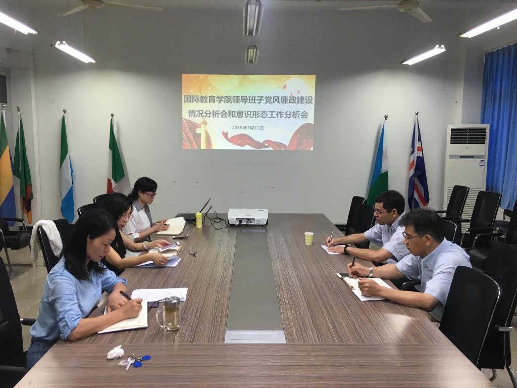 领导班子召开2018年上半年党风廉政建设情况分析会和意识形态工作分析会。会议由学院党总支书记叶苗主持,校纪委委员张一力教授、学院领导班子成员、党总支组织委员参加了会议。