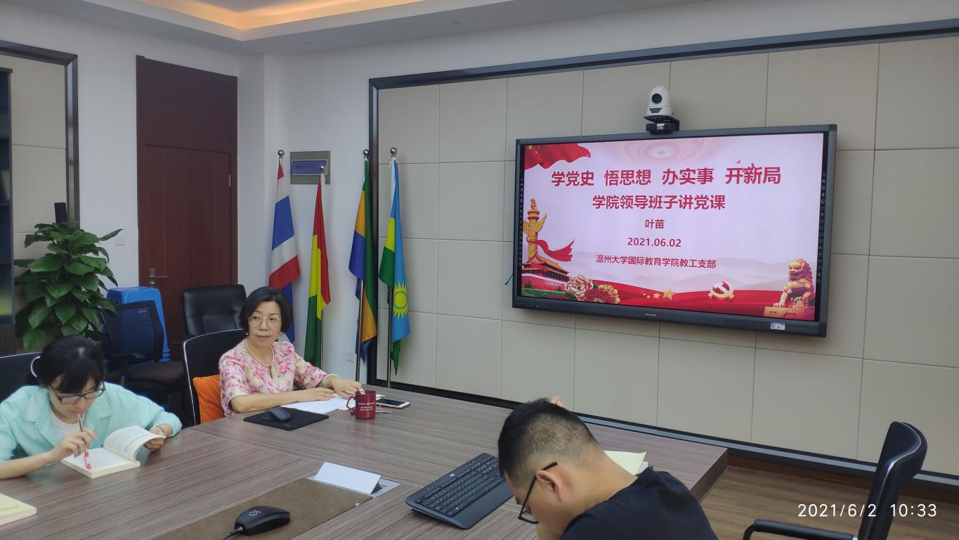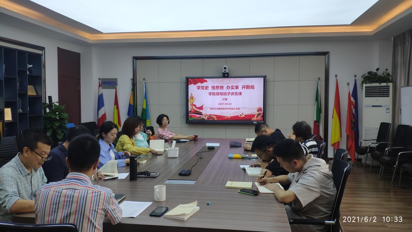 教工党支部党史学习教育整体学习部署。2021年6月2日上午,学院院长叶苗教授为全体教工党员讲授了一堂别开生面的微党课《初心与使命—建党伟业中的翻译活动》。