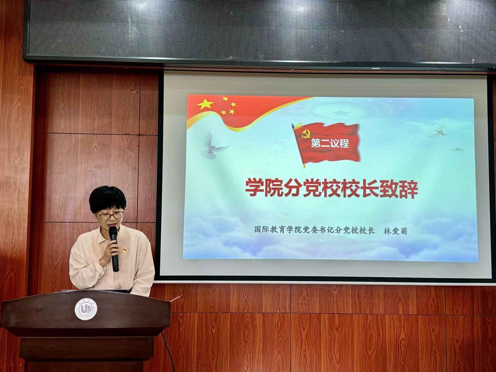 党总支书记兼分党校校长林爱菊致辞。她指出,当下学习宣传贯彻党的二十大精神、二十届三中全会精神,是全党全国的核心政治任务,开展此次党员骨干专题培训,不仅是党员分层分类培训的基础环节,更是在全校党员中掀起学习热潮的重要举措,并对全体学员提出了三点要求:一是坚定信念,铭记入党初衷;二是增长才干,勇扛时代重任;三是率先垂范,争当先锋楷模,希望各位党员骨干学有所成,学有所悟,学有所行!