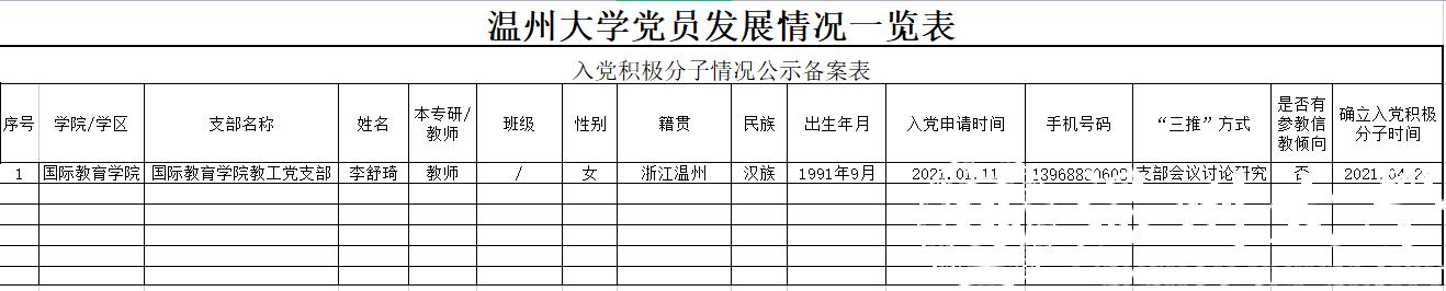 海角视频 教工第二党支部在听取培养联系人、党内外群众意见的基础上,经支部大会讨论同意,并经海角视频 党总支审议通过,报上级党委备案,拟确立李舒琦同志为发展对象,如对该同志的确立问题有异议,可在公示期内向教工第二党支部反映。公示期为2022年10月29日至11月4日,联系人:吴老师,电话:86595093,办公地点:3-225。