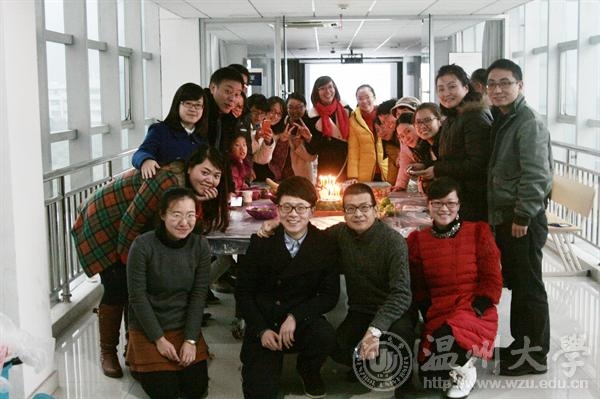 “Happy birthday to you, happy birthday to us, happy to everyone……”,12月27日下午,专家楼语音室传来悠扬悦耳的生日祝福歌声!在国际合作学院全体教工集体生日Party上,寿星们一起点燃蜡烛,许下心愿,红澄澄的烛光映照在每一张幸福的脸上。冷冷的冬日里,暖暖的烛光将每一颗真诚的心连接在一起,伴着轻快的音乐,和着同一个旋律,唱着同一首歌,每个人都真切体会到国际合作学院大家庭的温暖。