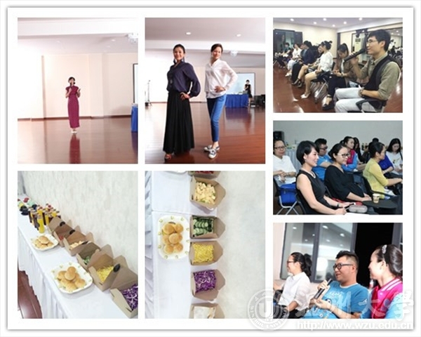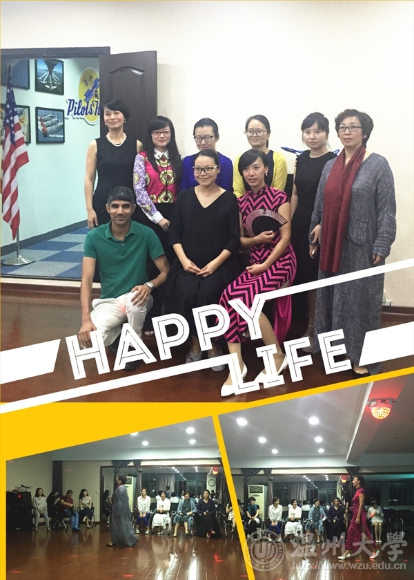 聚餐结束后,大家又前往学院路校区参加了精彩纷呈的沙龙活动,主要分为小型服装秀表演、服饰文化与礼仪presentation、互动环节、小型冷餐buffet四个部分。本期活动还邀请了温州30多名外语爱好者参加。学院工会主席包含丽副院长在沙龙活动伊始的致辞中表示,“温州是著名的侨乡,有着丰富的国际化资源,我们将欧美Language lover club的理念引进来,利用海角视频 国际合作学院自身的国际化资源优势,让众多留学生和外教参与进来,给温州市外语爱好者创造良好的外语文化环境,使地处温州市中心的飞行学院成为温州市的多元文化娱乐交流中心,大家可以在这里结交世界各地的朋友,同时练习各国语言,找到自己的语言伴侣,提升温州市民文化品质。”现场气氛热烈,学院教工和来宾们就主题为unique clothes纷纷表达了自己的看法和观点,有的说“every cloth has its soul(每件衣服都有自己的灵魂)”,有的说“clothes represent a person’s character and personality(衣服代表了人的个性和性格)”····
