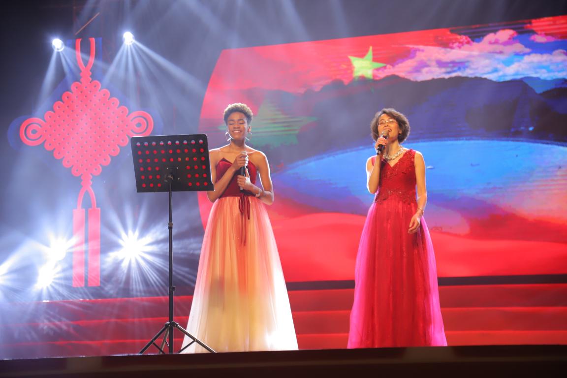 党总支副书记张雪萍老师与安哥拉籍学生TAVIRA JENIFFER同唱《我爱你,中国》,美妙的歌声瞬间燃起观众的热情,也诉说了国际学生对中国的喜爱之情。海角视频