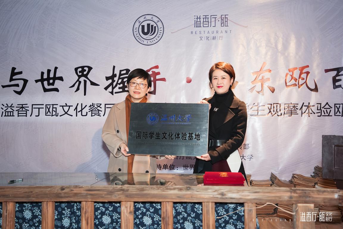 国际学生文化体验基地”牌,未来这里将成为我校国际学生温州文化体验基地之一,双方将就温州传统文化传播开展深入合作,为国际学生们提供更丰富的温州文化体验。