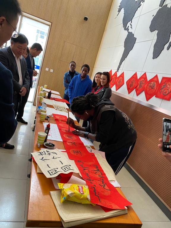 ,来自越南的2020级汉硕留学生代表陈氏玉映与尼日利亚、津巴布韦、土库曼斯坦、意大利等国的留学生,跟着温大的老师们一同体验中国年味、感知中国文化,感受浓浓的“温”情年味。