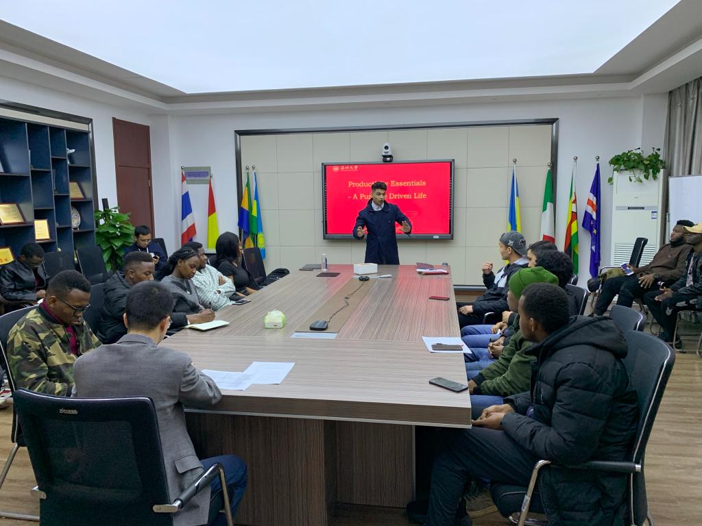 3月31日下午,以Productivity Essentials - A Purpose Driven Life(成功的秘诀——目标引领生活)为主题的留学生课外讲座在北校区3号楼311会议室举行,来自温州医科大学的硕士毕业生辛成乐(Brett Lyndall)为我校留学生开展了一场生动别致的讲座。