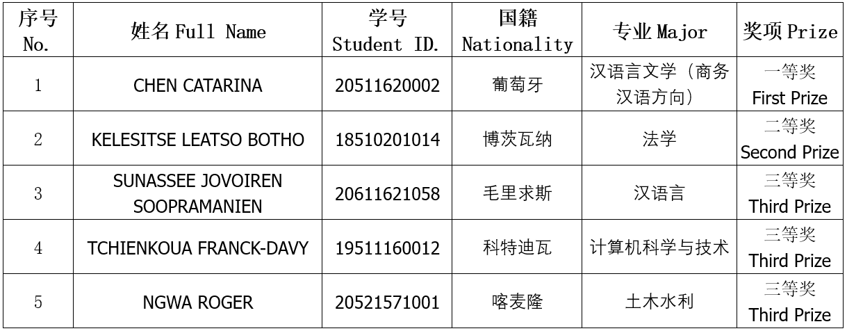 近日,第五届国际学生“我眼中的中国”假期见闻作品大赛顺利举行,来自葡萄牙的CHEN CATARINA(陈梦瑶)等五名学生分别获得一、二、三等奖。