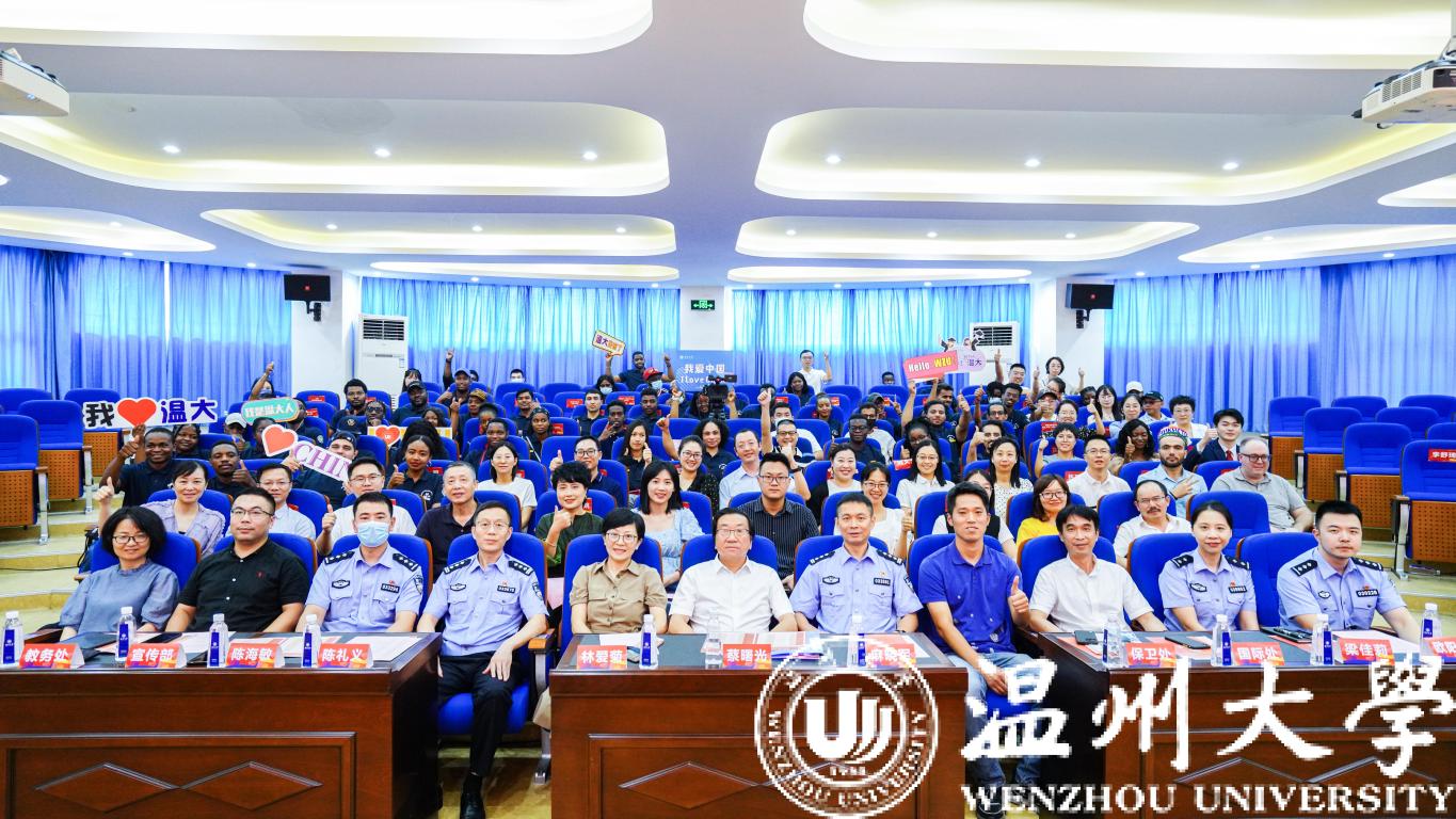 2022级国际学生开学典礼隆重举行。温州市公安局出入境管理局警官欧阳超,瓯海区公安分局出入境管理大队大队长麻晓军、副大队长陈礼义、警官梁佳莉,茶山派出所民警陈海敏,副校长蔡曙光,学校相关部门与学院领导,外事专员,海角视频