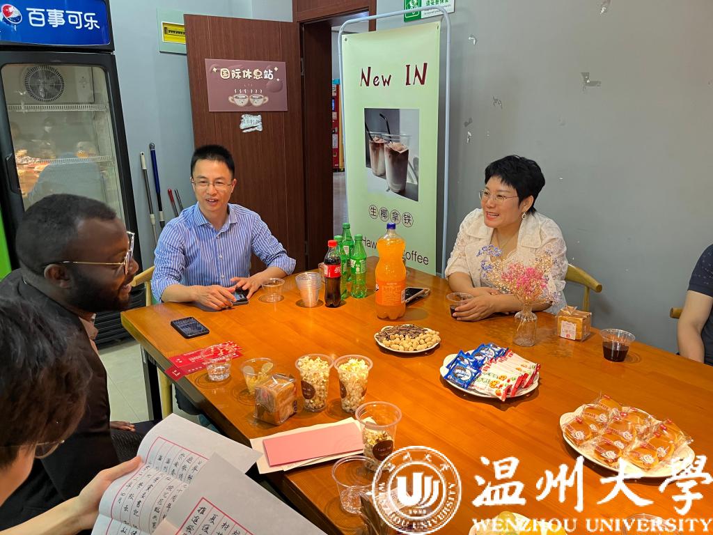 来自加纳的国际校友ADOFO MICHAEL ADJEI(洪太阳)以及航空管理专业的校友们前来参观。学院院长宋占美、副书记方建晓与校友及参展学生参加座谈会,校友们与留学生热情交流,分享自己的留学故事和成长经历。MICHAEL现在是登高电气公司的一名外贸事务部经理,他特别向留学生分享了自己留学温大的亲身经历和经验,勉励学弟学妹努力学习、学好中文,成为一名优秀的国际毕业生。