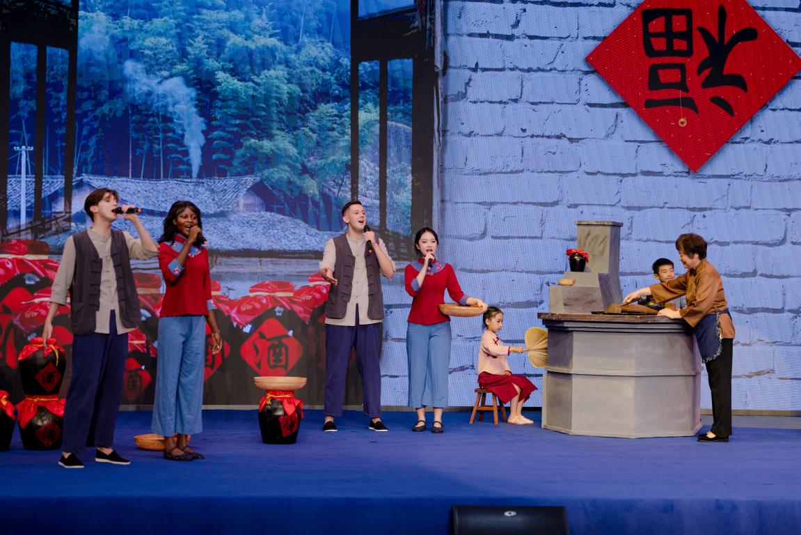 学生与温州市五洲文艺志愿者艺术团联合排演的节目《妈妈的酒》,通过网络直播向世界唱响温州好声音,讲好中国故事。学生们携手温州本土优秀演员共同表演的龙湾区文化馆原创歌曲《妈妈的酒》温暖而充满母爱,它以“妈妈的爱”为主线,以温州本地一种独特的“妈妈酒”非遗文化为切入口,通过再现制作妈妈酒的场景,以小见大,展现中华民族传统“家文化”的温暖。节目赢得了全场观众的阵阵掌声。
