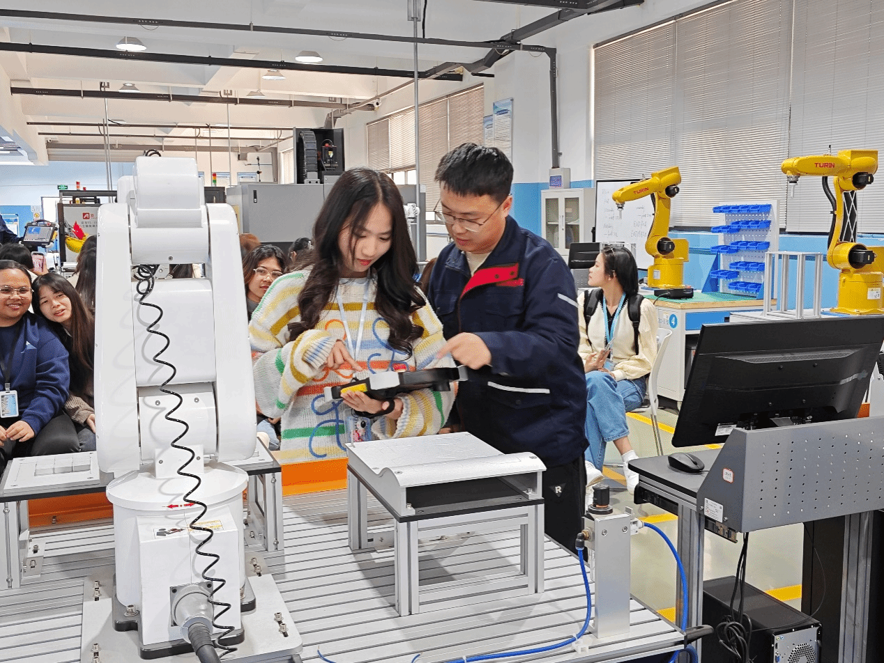 师生在专业人员的带领下亲身感受了先进的智能制造设备,深入了解工业机器人的工作原理和应用场景。他们数字设计、智能制造等领域展现出极大的兴趣,并对中国在智能制造领域的成就表示由衷的赞叹。