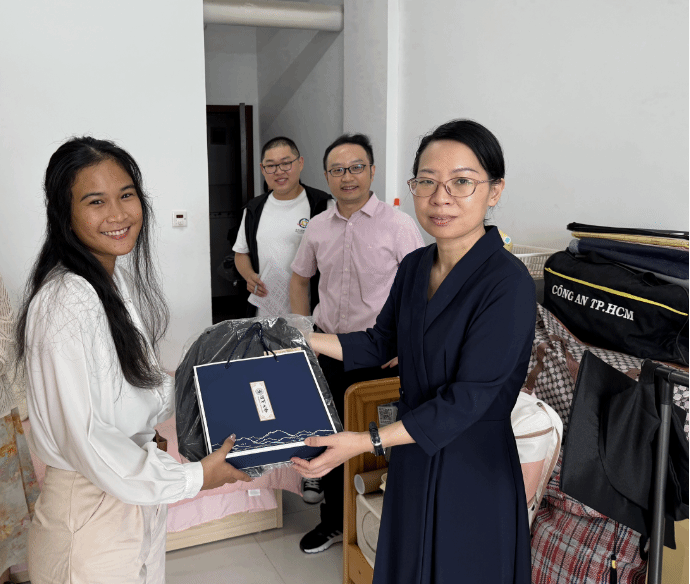 党总支书记林爱菊、院长夏远志、副院长郑婷、副书记丁强和全体辅导员老师们,深入毕业生宿舍,倾听毕业生心声,为即将毕业的留学生们送去美好祝福。
