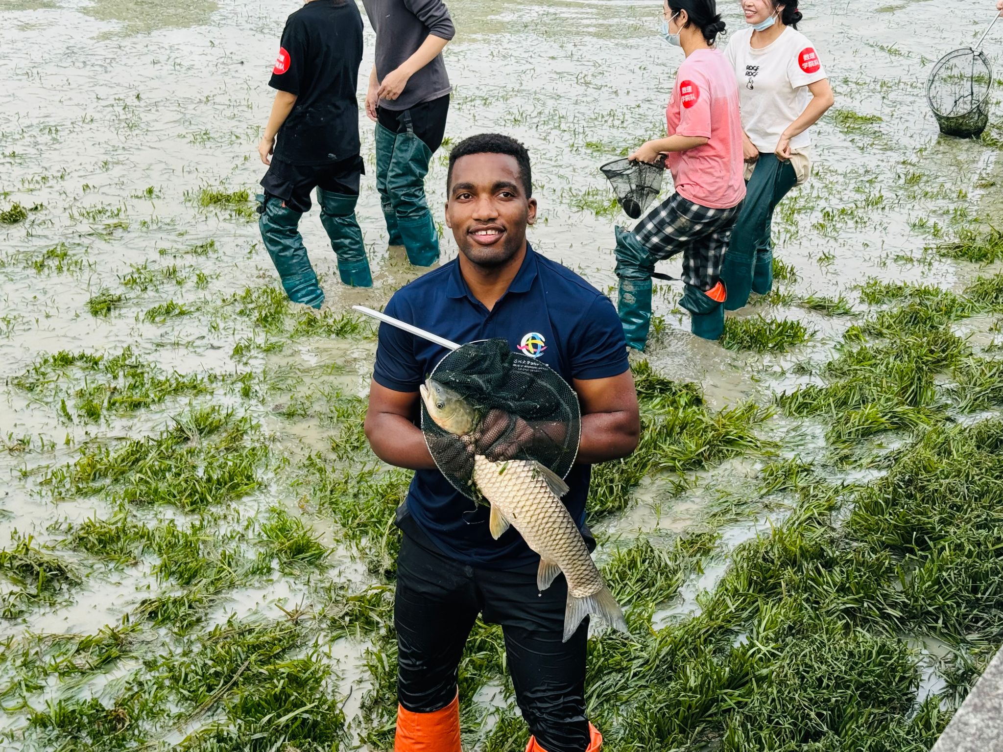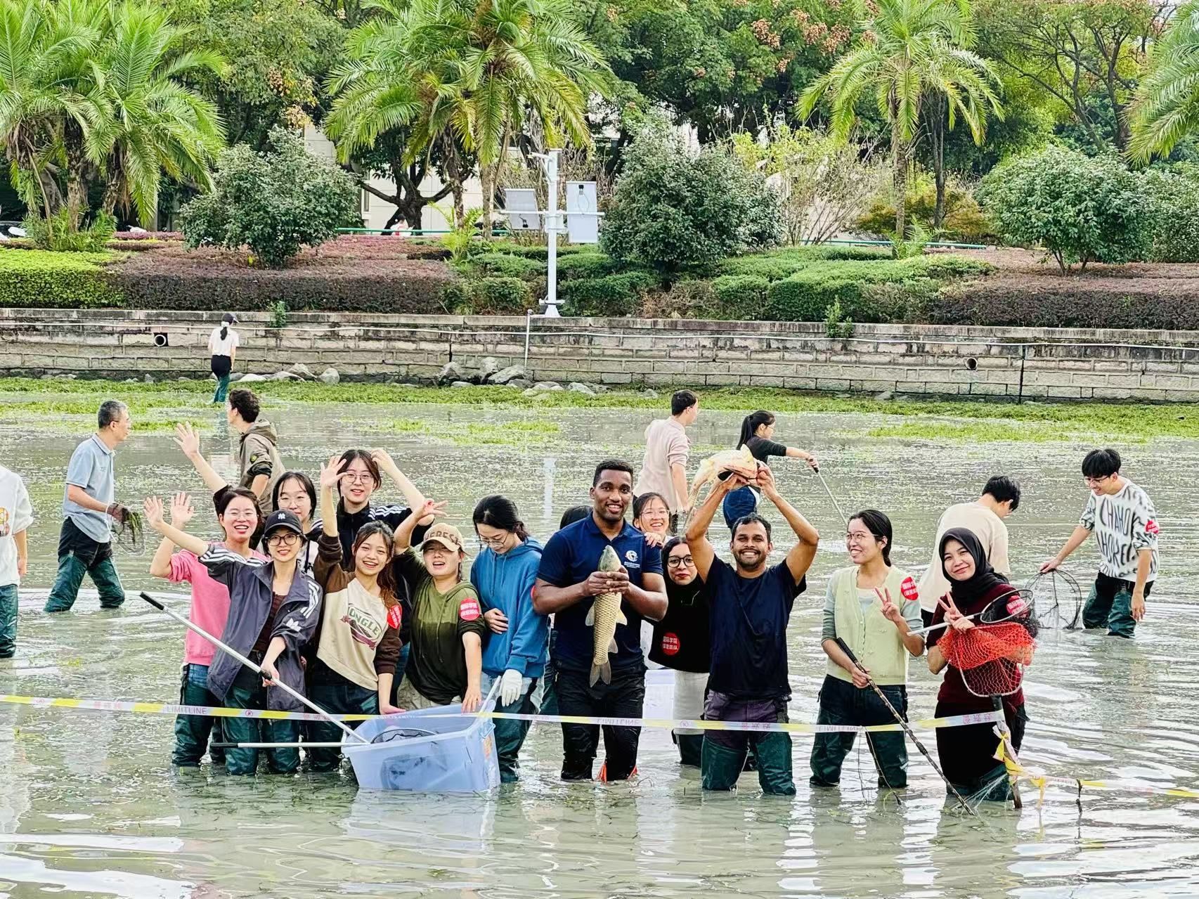 的留学生们更是兴致勃勃,齐心协力,成功地抓住了好多条鱼。“这是我第一次参加捕鱼活动,太有趣了!在中国,我体验到了不一样的校园生活”,来自赞比亚的留学生雷蒙兴奋地说道。