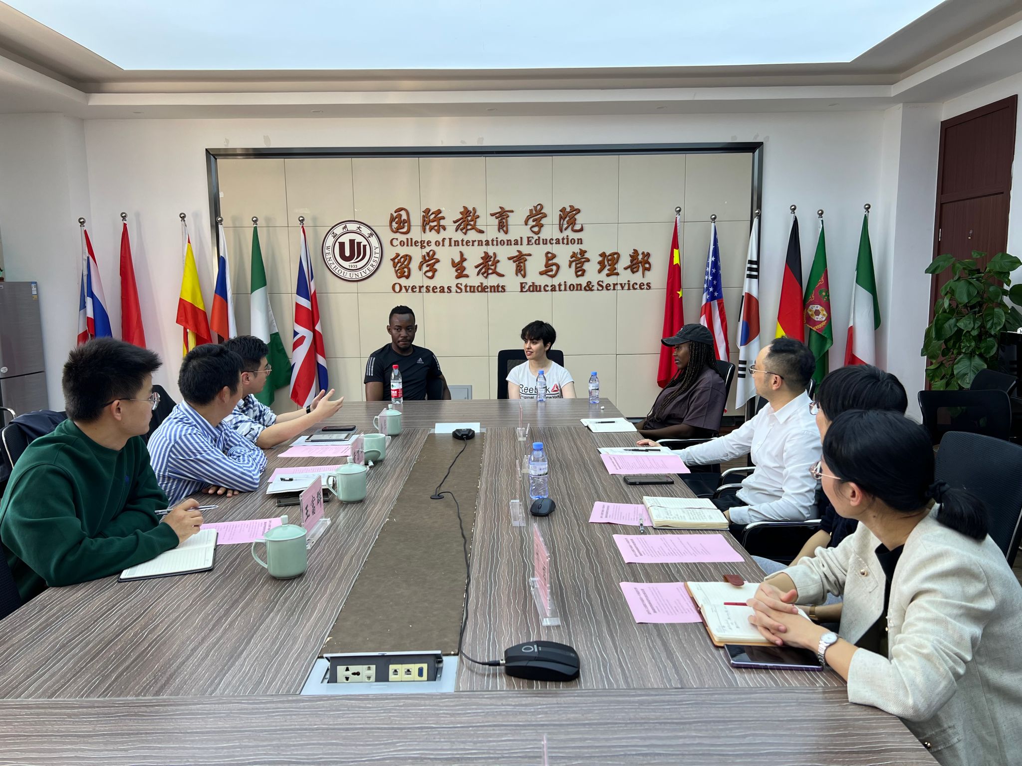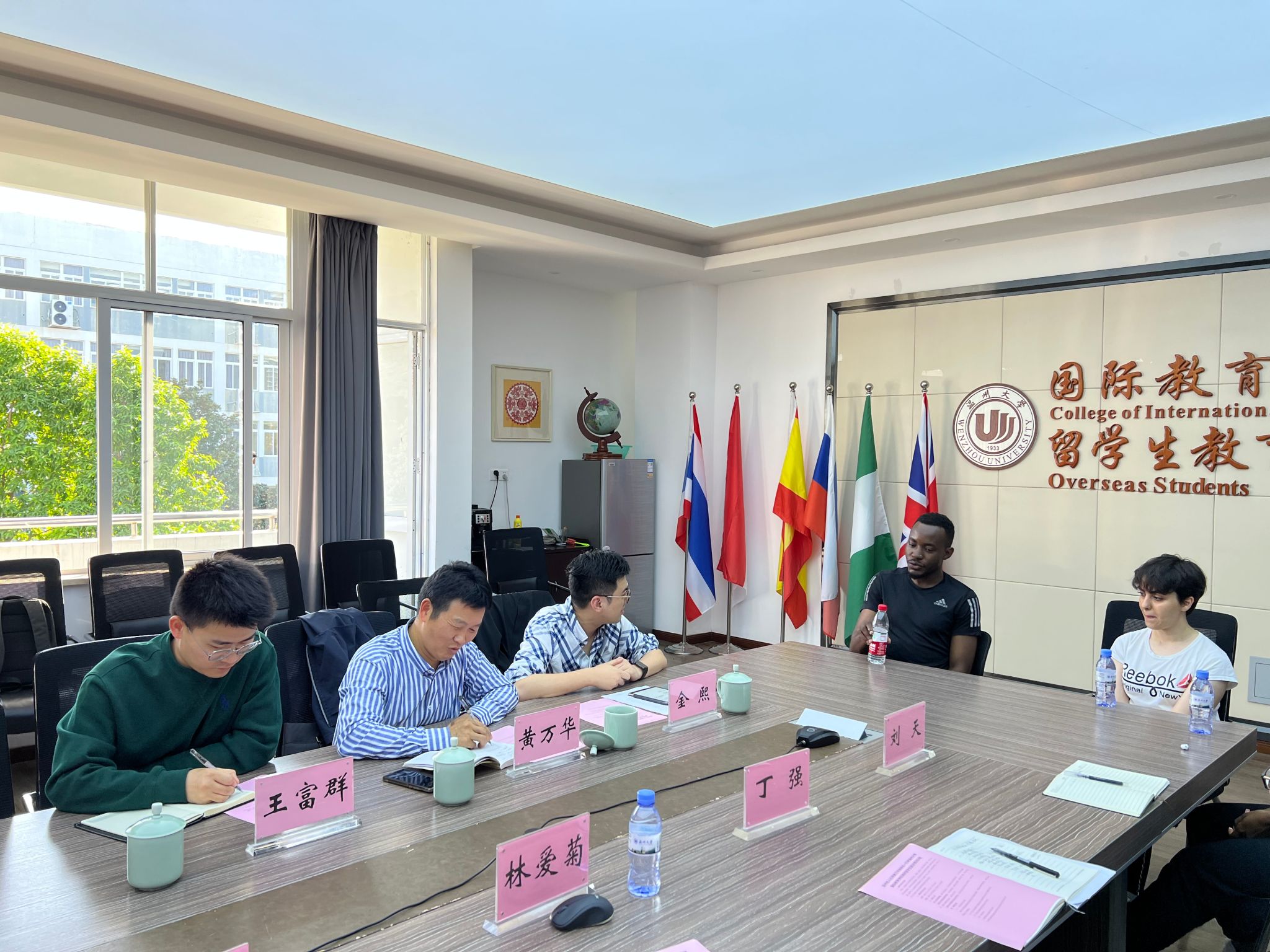 调研留学生就业情况,学院党总支书记林爱菊、副书记丁强、副院长郑婷、学工办主任刘天、辅导员程玲及来自津巴布韦、伊朗、叙利亚、塔吉克斯坦等国的留学生代表参加此次调研。