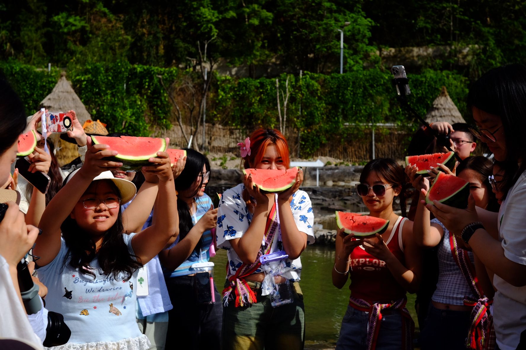 留学生国情教育实践基地”正式揭牌,该实践基地的揭牌也为我校再添国际学生国情教育实践平台,也将助力当地非遗文化的传播。随后,泰国学生在戏水区献上精心编排的传统舞蹈,灵动曼妙的舞姿与独具特色的服饰,生动展现了泰国文化的魅力,吸引众多游客驻足欣赏。
